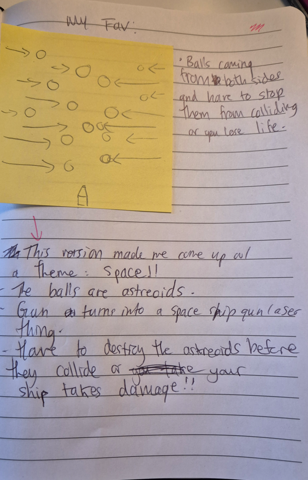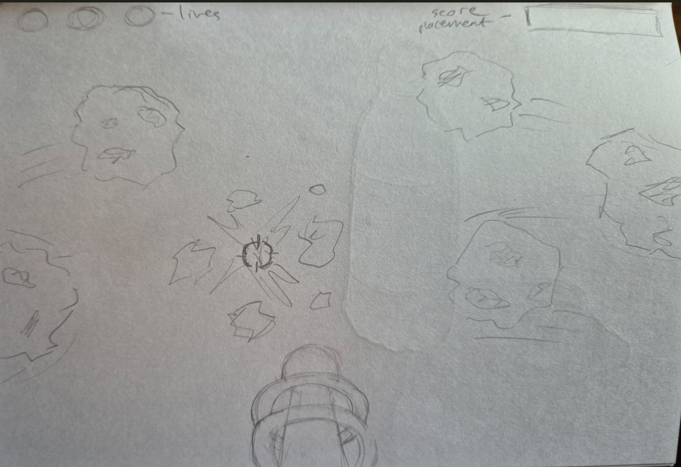 Then I thought about how the objects would move. My favourite is that you would destroy the objects before they collide with each other. From this I came up with an idea that the game could be based around space. You destroy asteroids before they collide!
