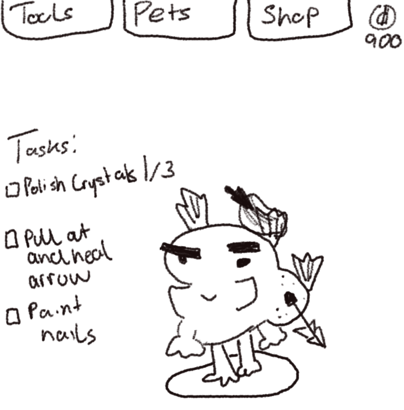 And for my final idea, I just started drawing random shapes and ended up with a cute little fantasy creature. I then thought making a game where you do small tasks to take care of different fantasy creatures could be fun.